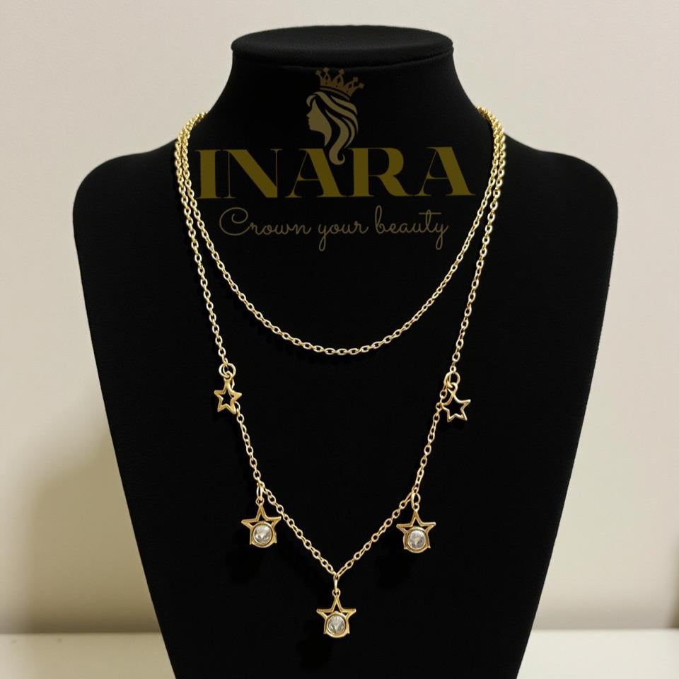 A delicate gold-plated necklace featuring a fine chain with a hanging stars designed for everyday elegance.