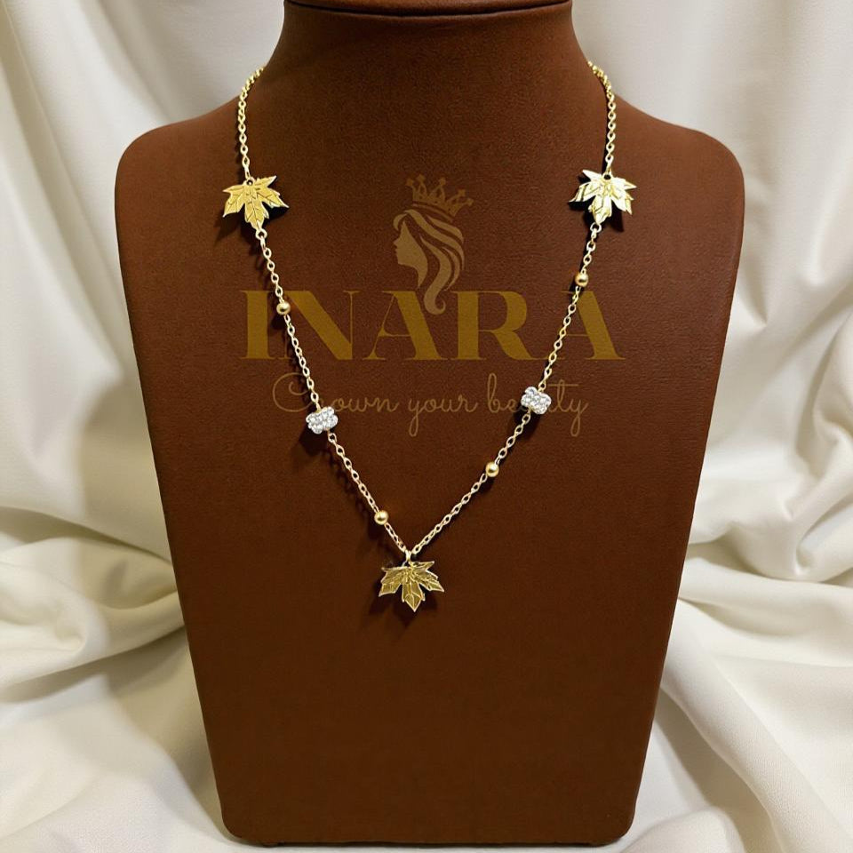 Anti tarnish stainless steel necklace with maple leaves and stones, suitable with all outfits.