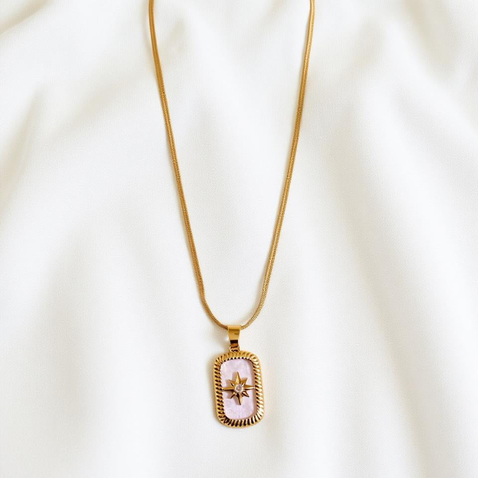 Anti-tarnish necklace with star inside rectangle with white background pendant, suitable for all occasions.