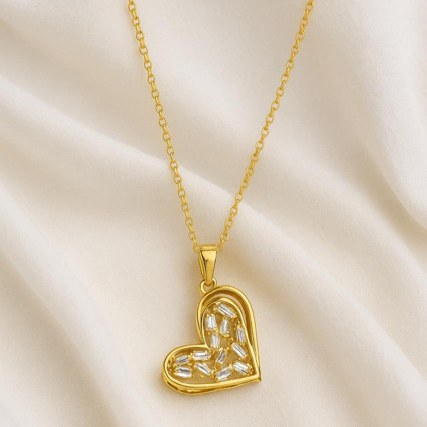 Anti tarnish stainless steel skin friendly necklace in heart shaped with stones.