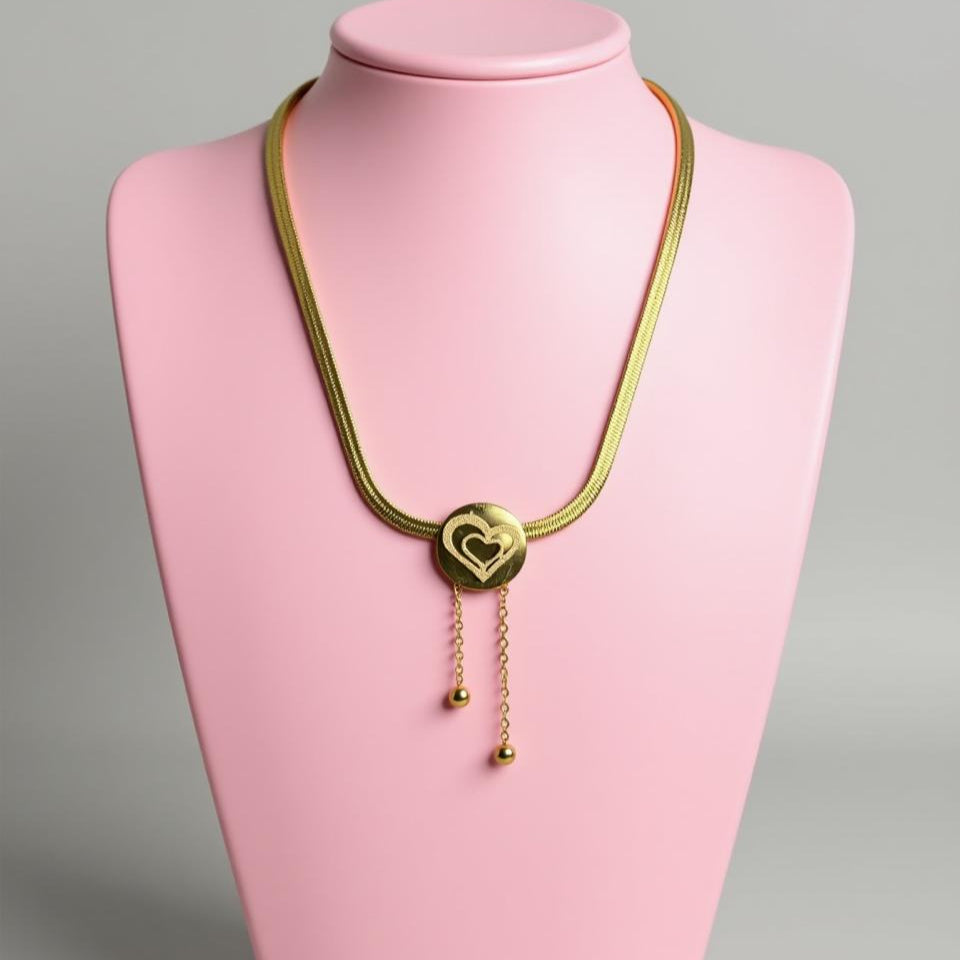 Anti tarnish satinless steel necklace with a modern, polished finish.