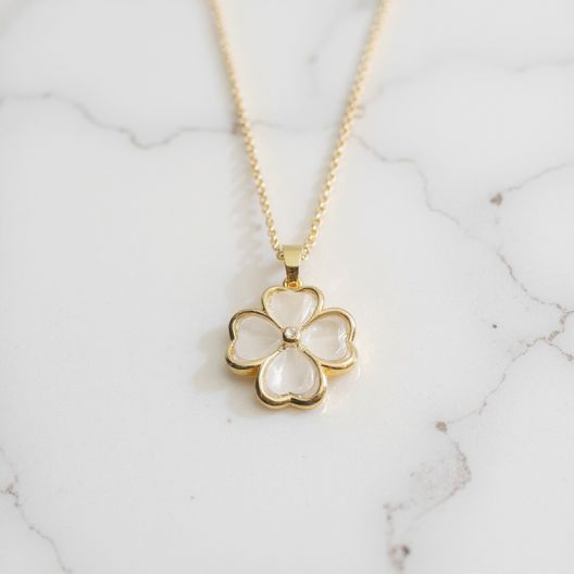 Hypoallergenic Anti tarnish stainless steel chain with white flower pendant